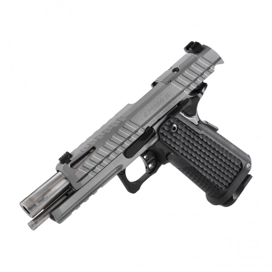 Le LFA Apollo 11 est la dernière évolution du classique 1911, conçue par Live Free Armory. La carcasse améliorée, accueillant un chargeur double colonne de 17 coups, est fabriquée en acier afin d’offrir une rigidité et une durabilité exceptionnelles. Le canon Bull assure une précision de niveau Match, constituant une solution idéale pour les tireurs exigeants, aussi bien en dynamique qu’en précision.
