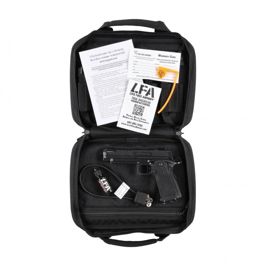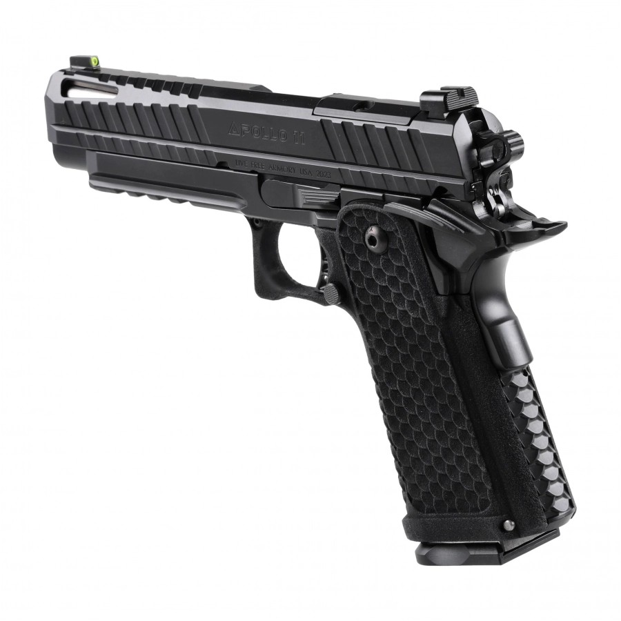 Le LFA Apollo 11 est la dernière évolution du classique 1911, conçue par Live Free Armory. La carcasse améliorée, accueillant un chargeur double colonne de 17 coups, est fabriquée en acier afin d’offrir une rigidité et une durabilité exceptionnelles. Le canon Bull assure une précision de niveau Match, constituant une solution idéale pour les tireurs exigeants, aussi bien en dynamique qu’en précision.